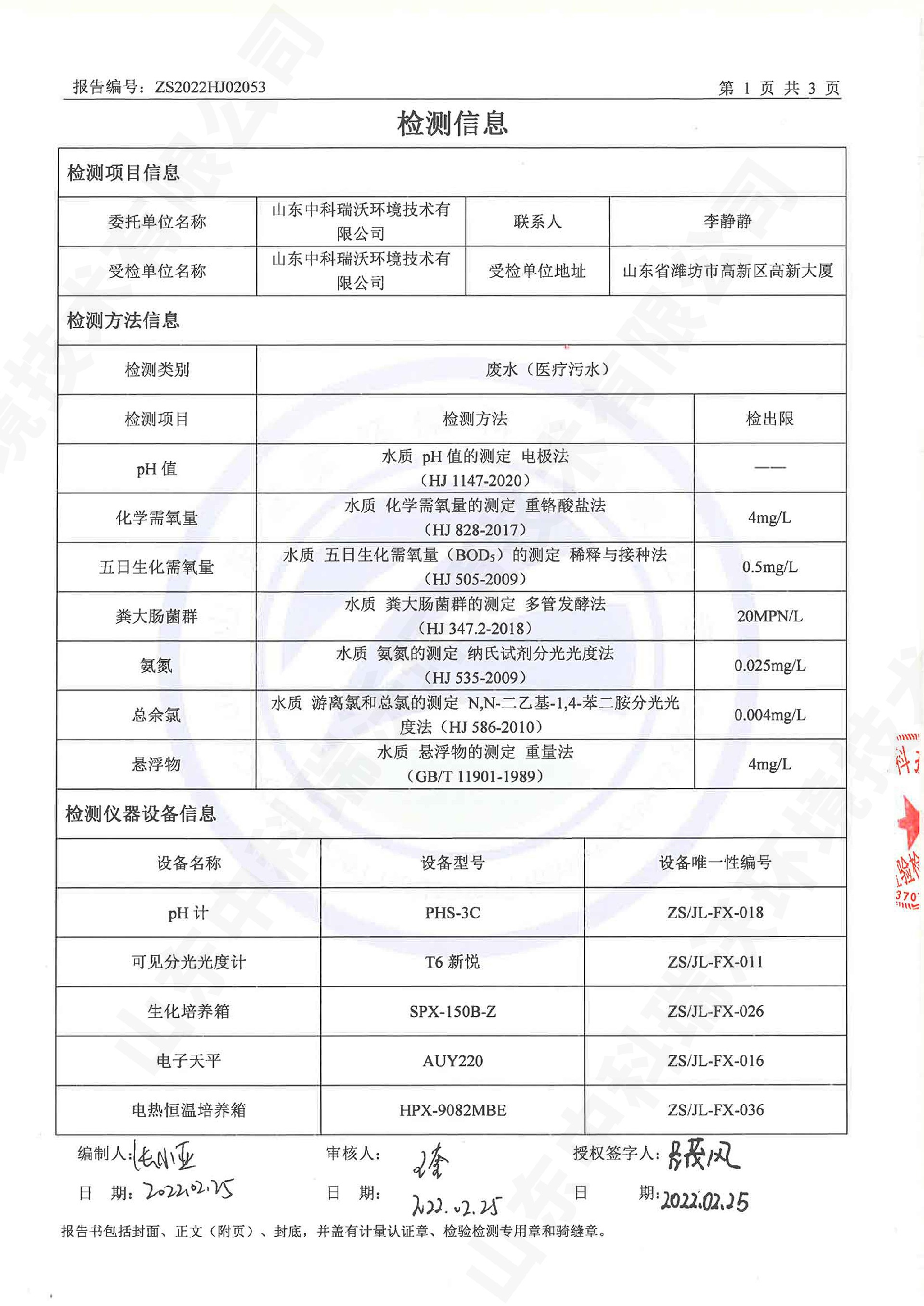 實驗室廢水處理設備出水檢測報告