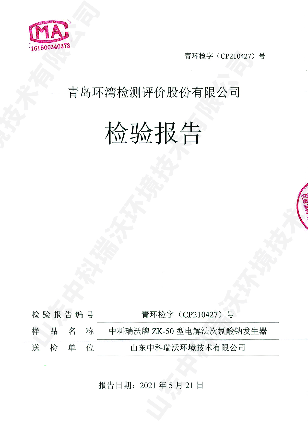醫(yī)療污水處理設備檢測報告~次氯酸鈉消毒