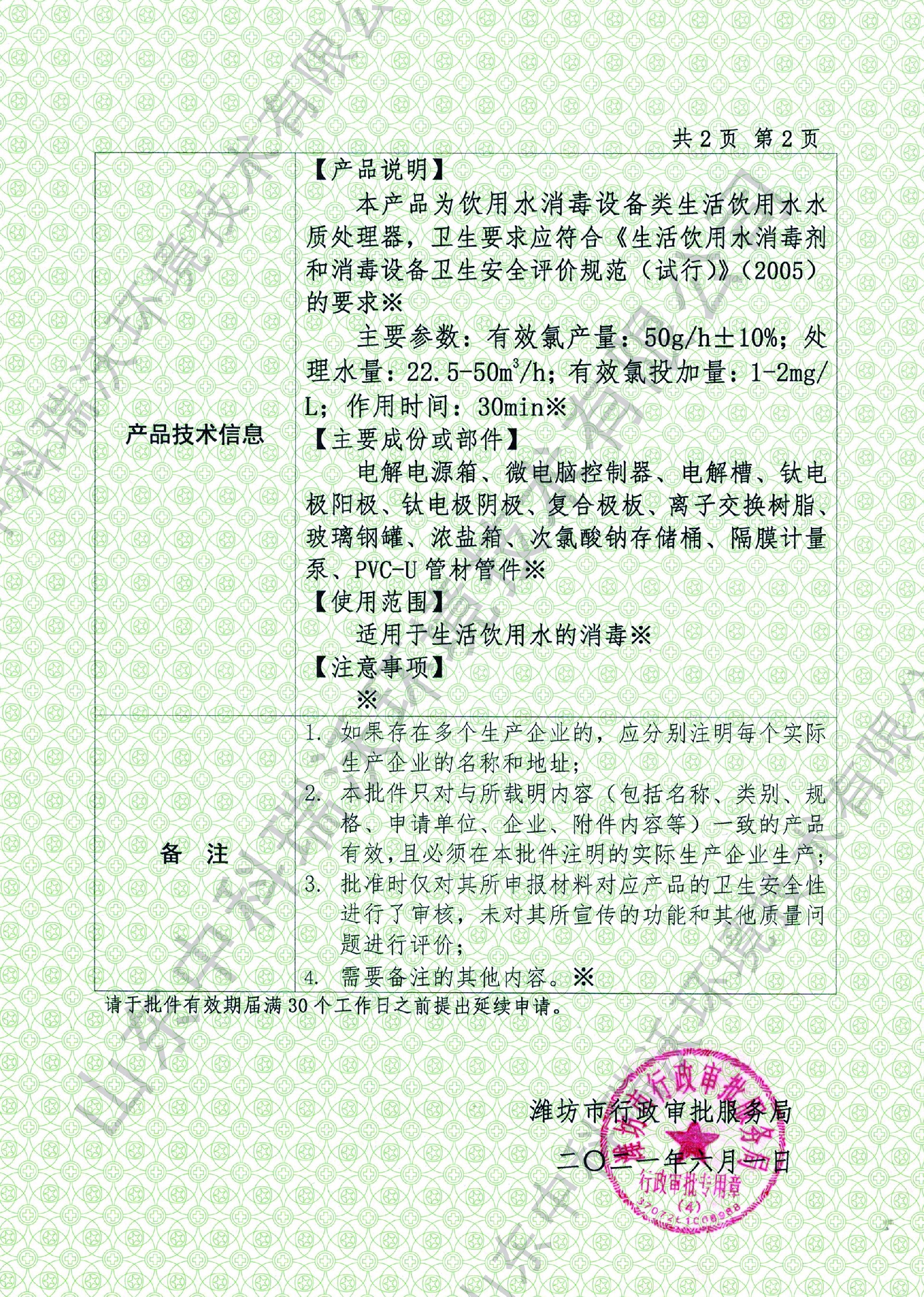 電解次氯酸鈉衛(wèi)生許可批件